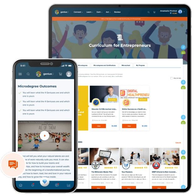 Our mission is to disrupt the current education model with a 21st century curriculum that teaches students of all ages how to ‘create a job’ instead of ‘get a job’. Genius Group’s education curriculum is being delivered virtually, in person, locally and globally via our Edtech platform - GeniusU.com, through microschools, camps, schools, colleges and corporate training.